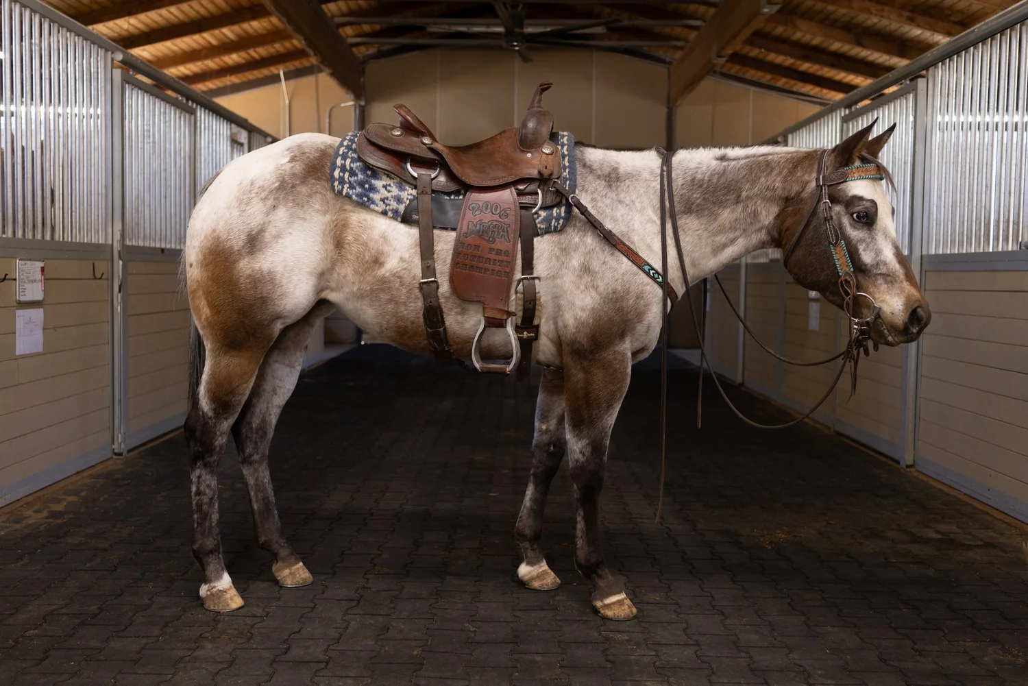 Bella is the type of horse that captures attention the moment she steps into view. Her striking ApHC conformation, smooth movements, and expressive eyes make her a joy to watch. More importantly, Bella has the kind of temperament that makes her a perfect family horse.