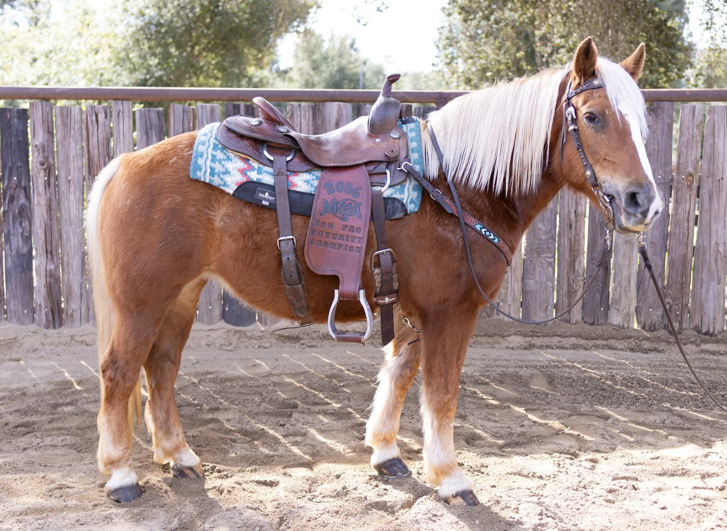 Pre-vet-checked and up to date on farrier, vaccines and teeth. No maintenance. Very small children may need a little help putting on the bridle, other than that she has been a delight.