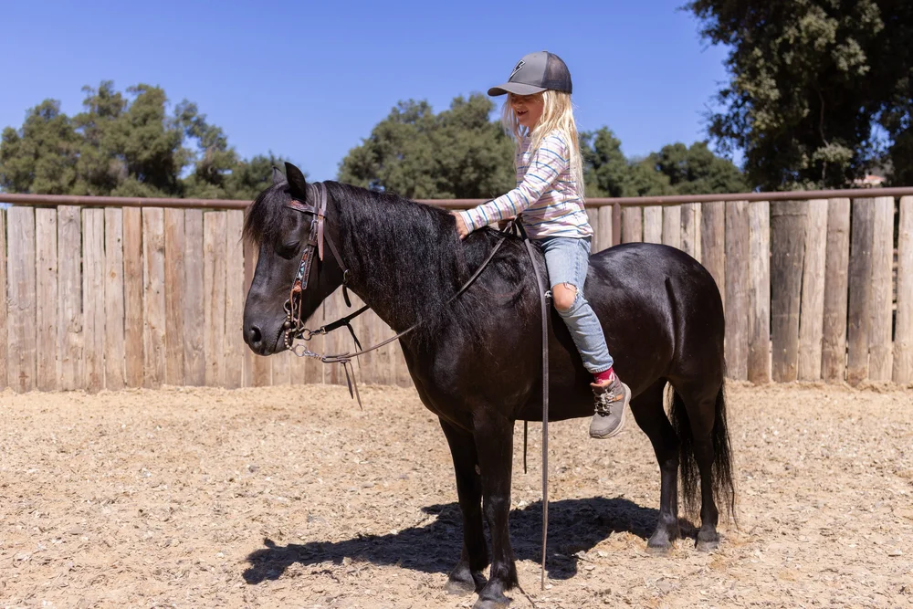 Our kids have ridden him bareback into the pond, ridden him around in the water, then jumped off of him and climbed back on again while he stood waiting. Georgia has ridden Scooter all over the property, and he’s carefully taken her over the stairs, on the teeter totter, and up and down the stone steps without missing a step or batting an eye. He’s just not fazed by much and will take care of your kids like he has ours.